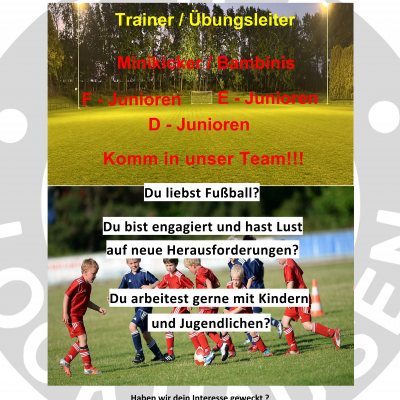 Wir suchen zur neuen Saison 2026 / 27 Trainer / Übungsleiter E - Junioren Minikicker / Bambinis F - Junioren D - Junioren