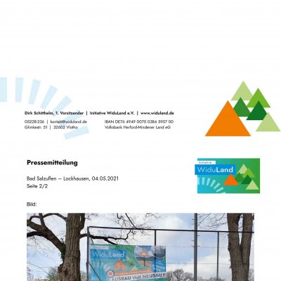 TuS Lockhausen unterstützt WiduLand aktiv - Gemeinsam gegen den Neubau einer ICE-Trasse „Wir wollen ein sichtbares Zeichen setzen, um unseren Widerstand gegen die ICE-Neubautrasse zu unterstreichen!“ Mit diesen Worten hängten die Fußballer des TuS Lockhausen gemeinsam mit dem Ortsgruppen-Sprecher der BI WiduLand Jost Elliesen das neues Banner am Sportplatz auf.