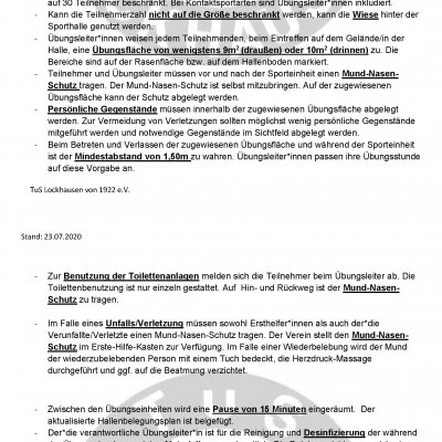 Allgemeine Rahmenbedingungen Sportbetrieb TuS Lockhausen