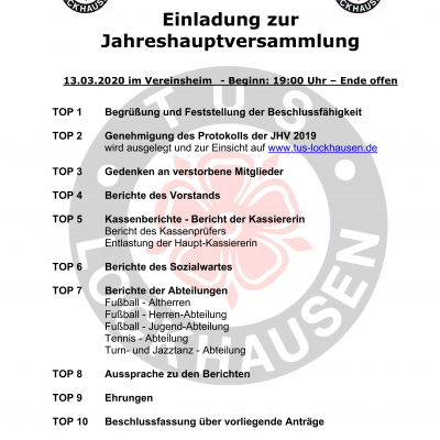 Am 13.03.2020 im Vereinsheim - Beginn: 19:00 Uhr
