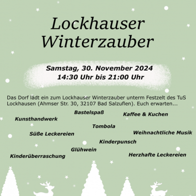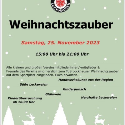 Alle kleinen und großen Vereinsmitgliederinnen/-mitglieder sind herzlich zum TuS Lockhauser Weihnachtszauber auf dem Sportplatz eingeladen. Euch erwarten...