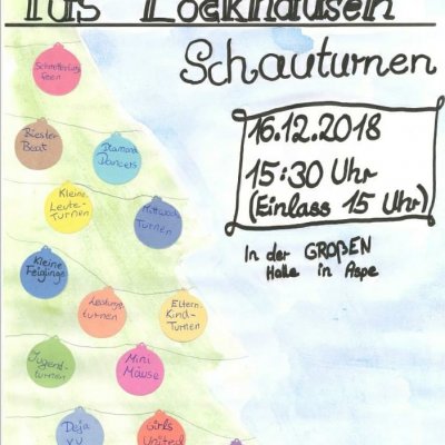 Der Countdown läuft, denn schon bald ist es wieder soweit! Das ADVENTS-SCHAUTURNEN am 16. Dezember 2018. Um 15 Uhr öffnen sich die Türen der großen 3-fach-Sporthalle im Schulzentrum Werl-Aspe. Das bunte Programm der Turnabteilung startet dann um 15:30 Uhr.